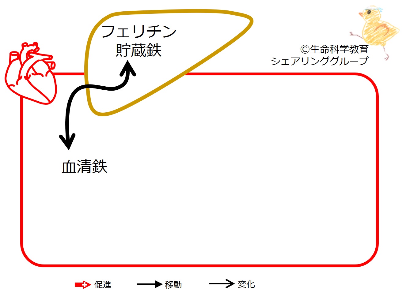 血清鉄が多いとフェリチン(貯蔵鉄)も多くなり、血清鉄が少ないとフェリチン(貯蔵鉄)も少なくなります。