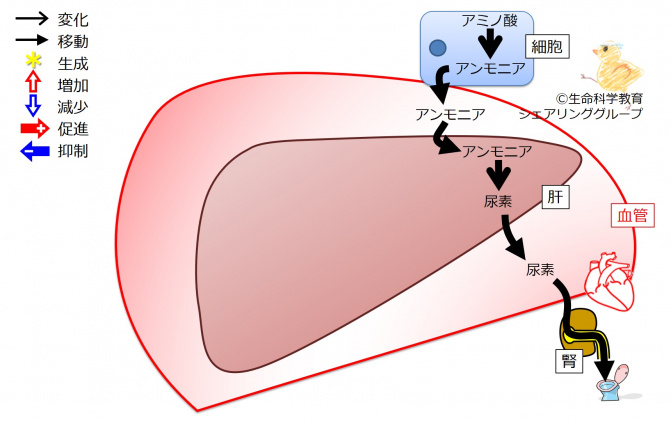 肝臓は 尿素を尿中に排出 アンモニアを尿素に変換 正解!している。