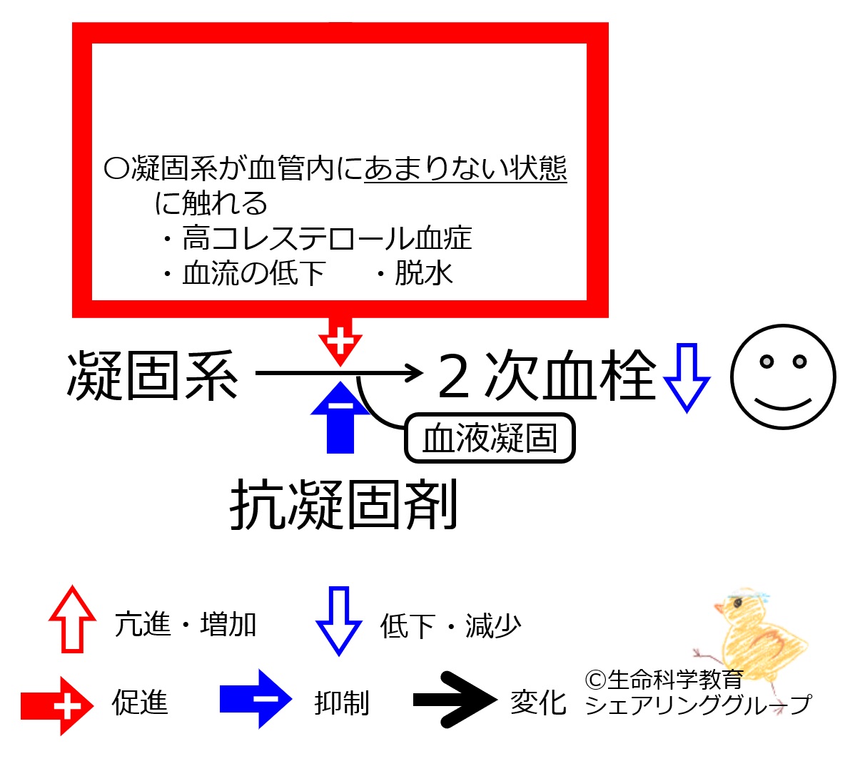 抗凝固剤は、文字通り、血液凝固(2次血栓ができること)を抑制します。できあがっている血栓を分解(溶解)させる作用とは異なります。