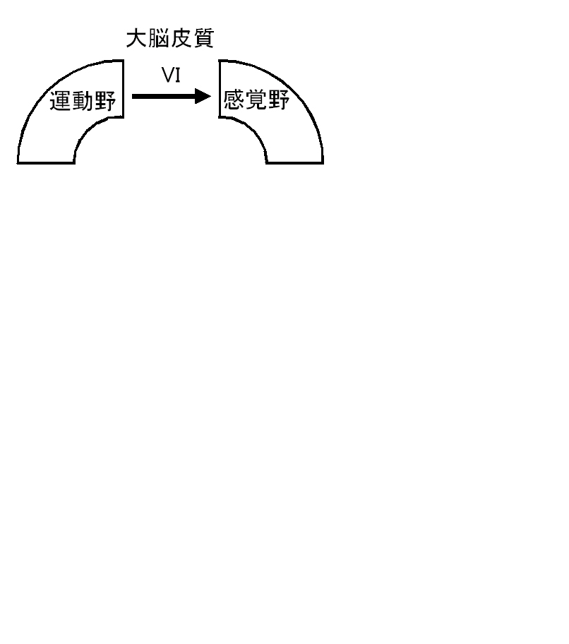 努力感:「頑張って息している」感覚。運動野が随意的に呼吸を増大させる「努力」が感覚野で「努力感」として感覚されると考えられている。 図中のVIの経路である。